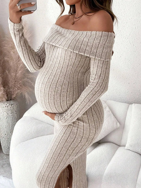 Embrace comfort and style throughout your pregnancy with this versatile maternity knit sweater dress. The off-the-shoulder design offers a flattering silhouette that accommodates your growing bump while maintaining an effortlessly chic aesthetic. Crafted from soft, breathable knit fabric, this long-sleeve piece provides warmth and gentle support without restriction. The relaxed fit ensures ease of movement, making it perfect for everyday wear, work, or casual outings. Layer it with leggings or wear solo for a polished maternity look that transitions seamlessly from season to season.