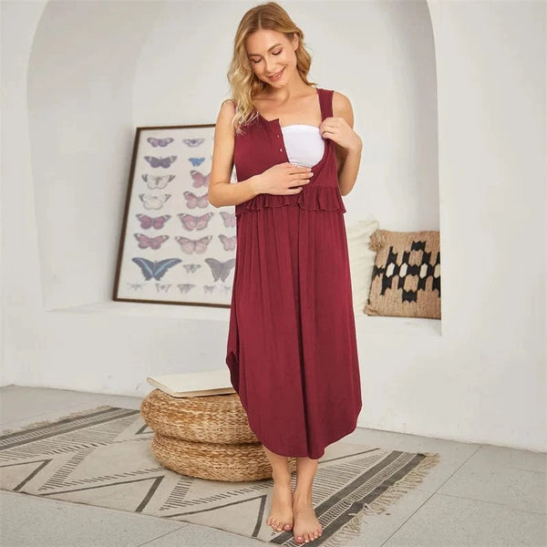 Designed for comfort and functionality, this Maternity Nursing Cotton Casual Dress seamlessly transitions from pregnancy to postpartum. The breathable cotton fabric provides all-day comfort while the discreet nursing access ensures convenient feeding. Its versatile silhouette flatters your changing body while maintaining a casual, stylish appearance suitable for various occasions.
